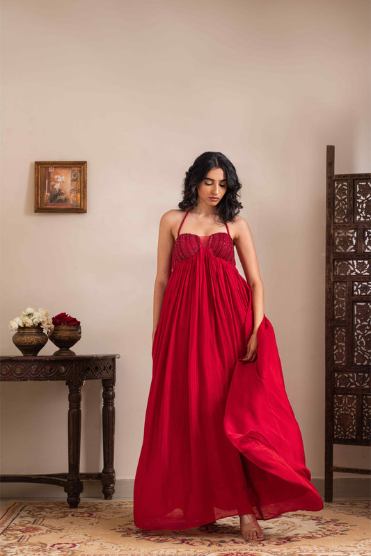 Halterneck madhubani corset dress