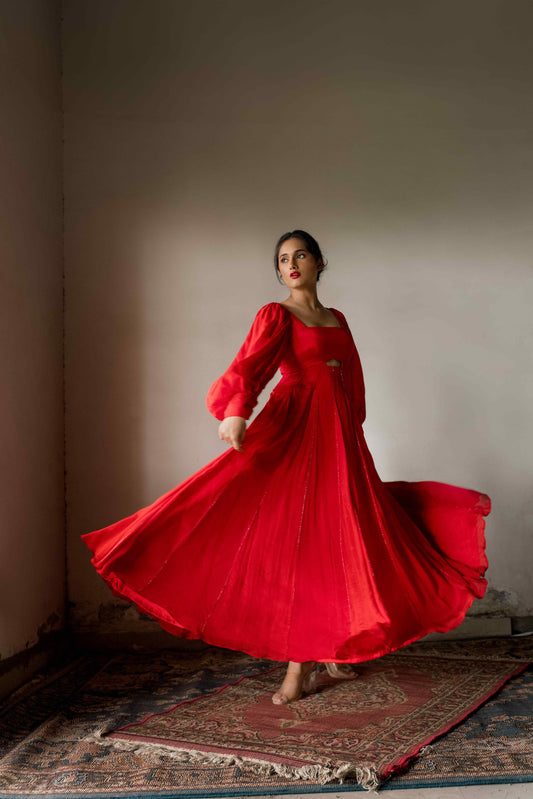 Detachable double shaded godet dress