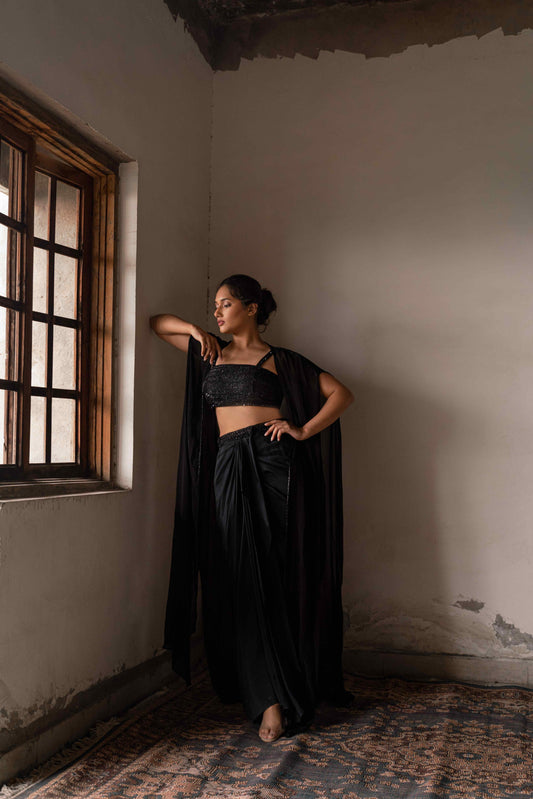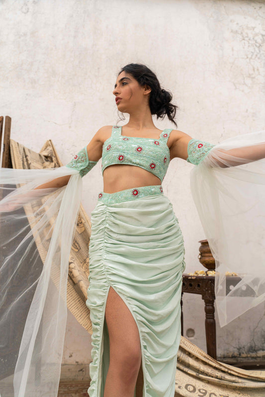 Madhubani pre-draped skirt set